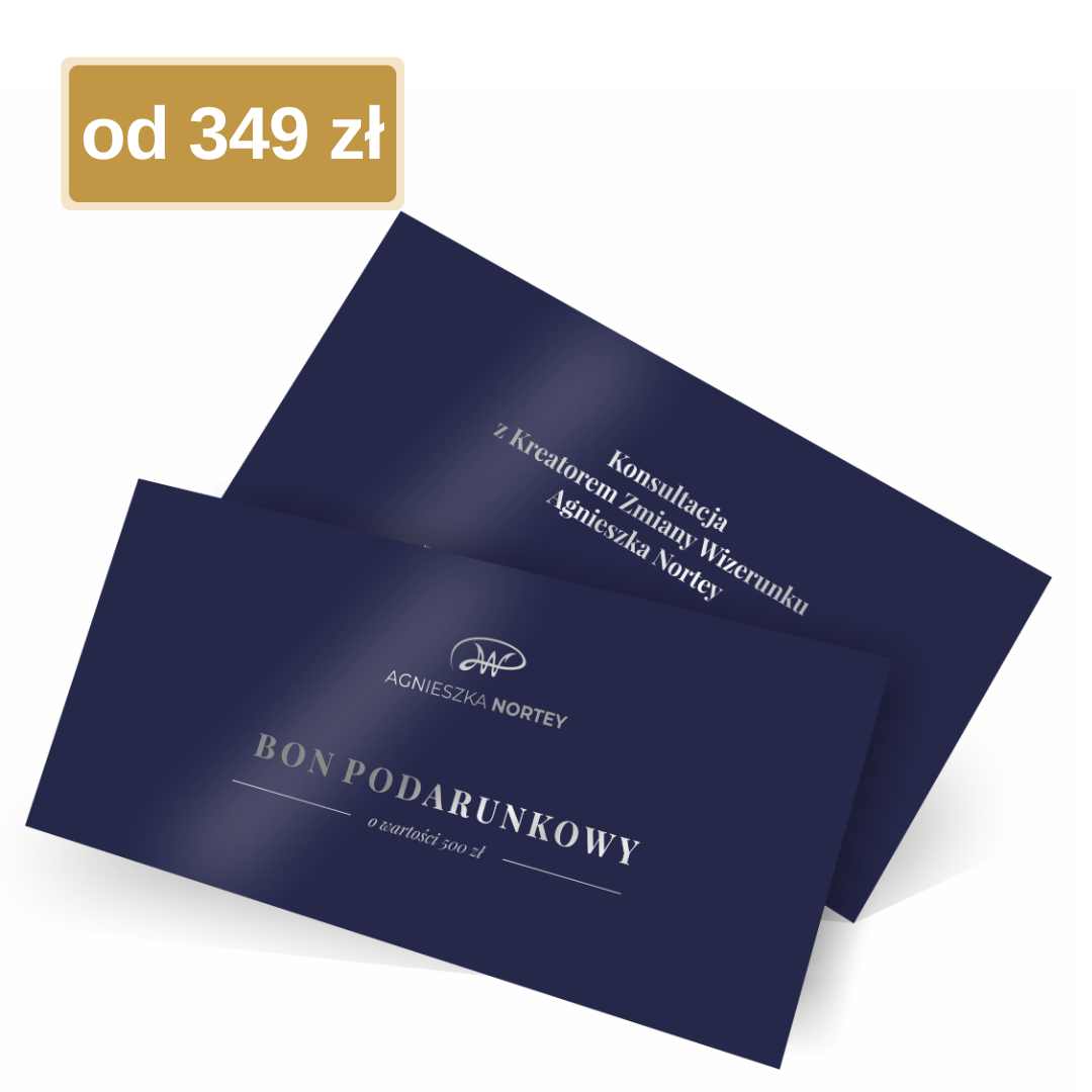 | Typ vouchera: | Konsultacja Online 1h video – 399 zł, Odkrycie Stylu + Konsultacja Online 1h video – 999 zł, Przegląd Szafy 1999 zł, Zakupy ze Stylistką – 1999 zł |